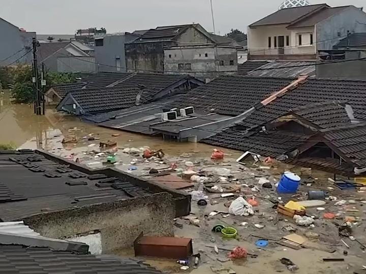 Menurut dorna salah satu warga Bojong Kulur Kecamatan Gunung Putri Kabupaten Bogor mengatakan bahwa banjir mengepung wilayah Villa Nusa Indah Satu,Dua dan Tiga serta Perumahan Bumi Mutiara air naik hingga 4 meter.