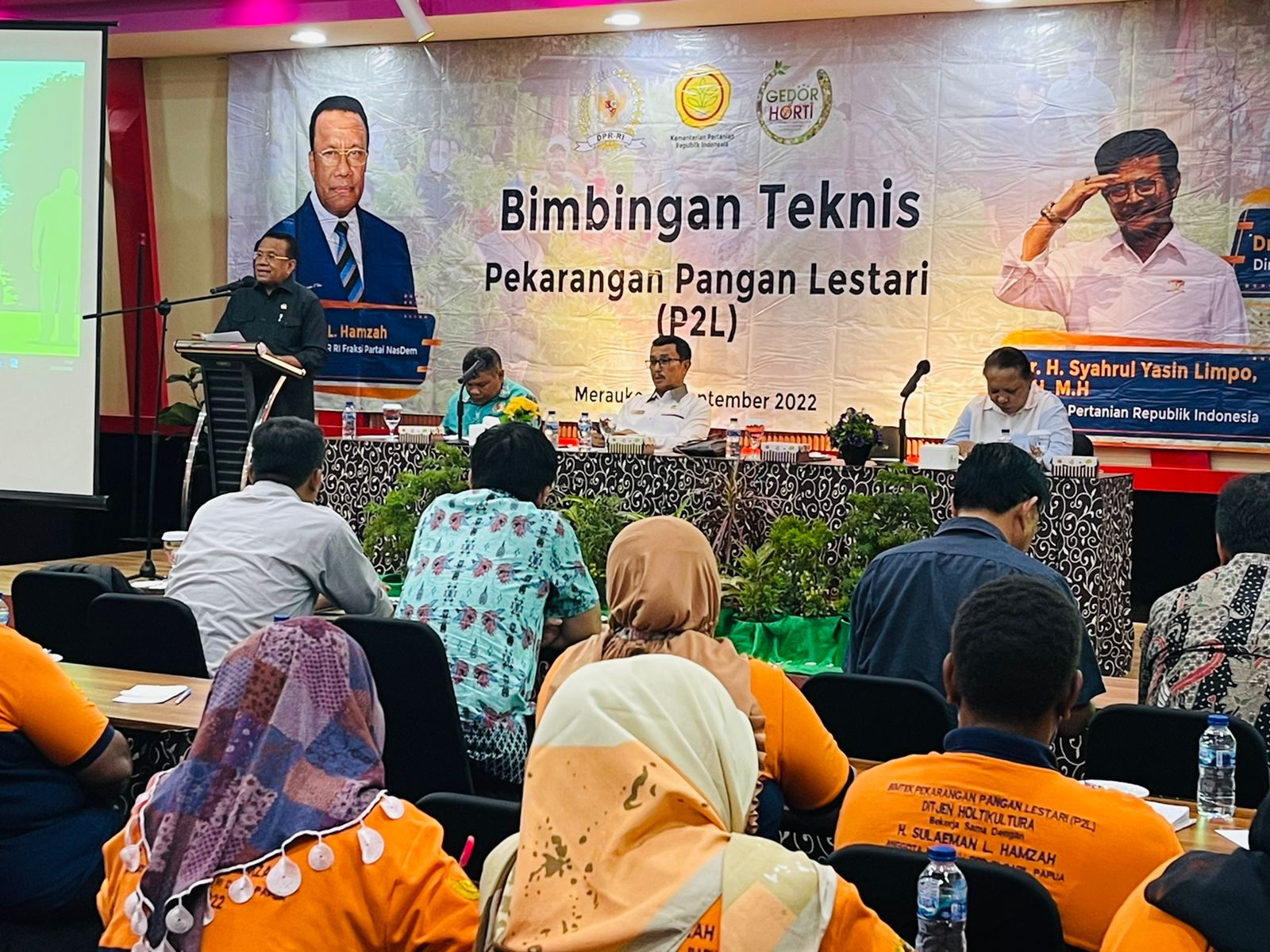 Rakyat Today Id _ Merauke – Sekda Kabupaten Merauke Ruslan Ramli membuka bimbingan teknis pekarangan pangan lestari ( P2L ) yang di laksanakan oleh kementrian pertanian Republik Indonesia berkerjasama dengan Anggota DPR RI Sulaeman L. Hamzah ,