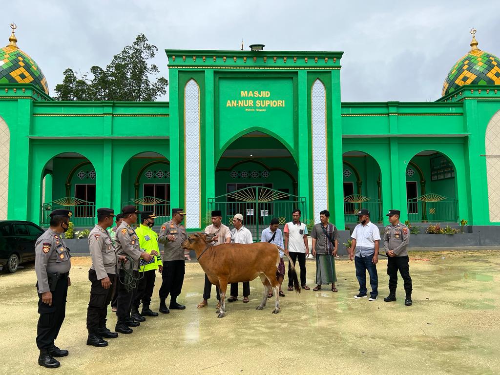 Pada Kesepatannya Kapolres Supiori Akbp Moh.Darodjat Daimboa S.Pd bersama PJU Polres Supiori dan Para personil Polres Supiori, mendatangi Masjid Annur untuk memberikan atau menyerahkan Sapi Qurban untuk Hari Raya Idul Adha.