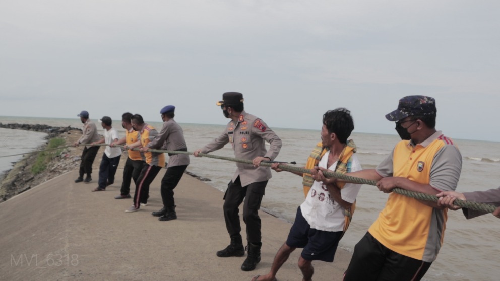 PEOPLE TODAY.ID _PEMALANG – The Head of Pemalang Police, AKBP Ari Wibowo, Friday (11/2/2022) helped to evacuate the wreck of a fishing boat that suffered a sea accident because it hit a breakwater in the Tanjungsari estuary, Pemalang.