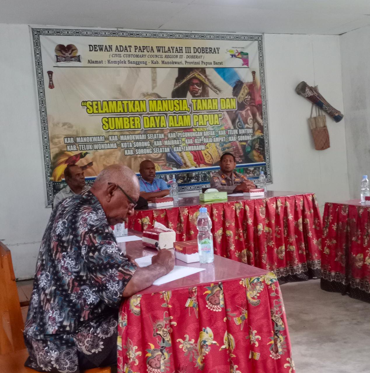 Polda Papua Barat dan Polres Manokwari beserta Dewan Adat Papua Wilayah III Doberay gelar Sosialisasi Kamtibmas