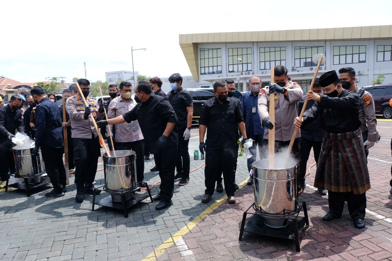 Acara pemusnahan dipimpin Wakapolda Riau Brigjen Tabana Bangun bersama forkopimda Riau, dan pejabat utama Polda, dibelakang markas Polda jl Pattimura Pekanbaru pada Kamis (29/9/2022).