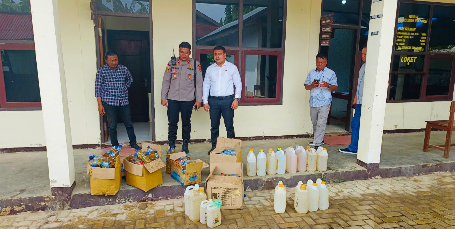 Penyerahan barang bukti minuman keras ini antara lain minuman loka jenis Sopi sebanyak 15 buah Jirigen ukuran 5 Liter, 2 buah Jirigen ukuran 2 Liter, 3 botol ukuran 1500ml dan