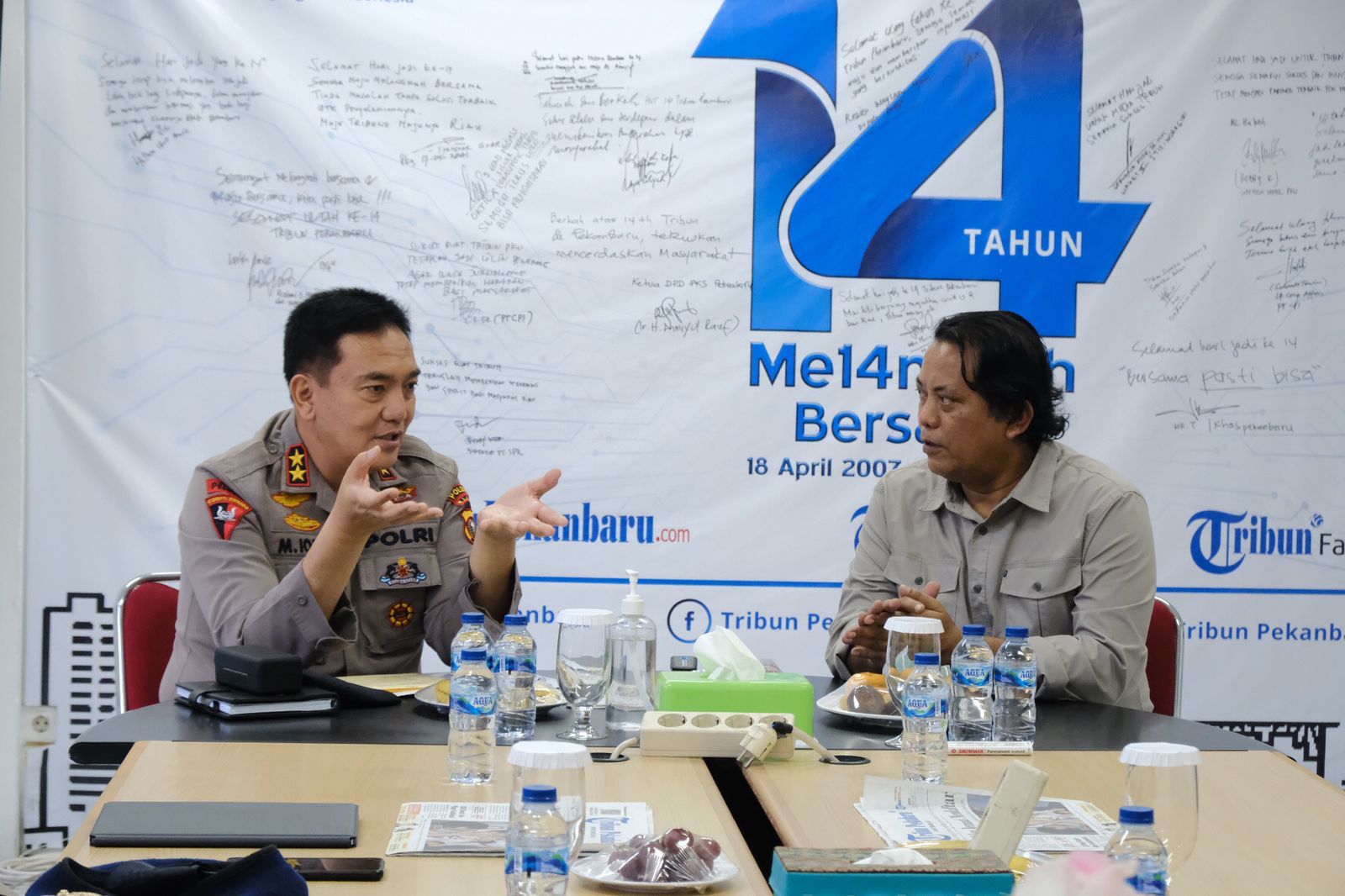 Usai penyambutan, kegiatan ramah tamah Irjen Iqbal dan rombongan bersama tim Tribun Pekanbaru dilanjutkan di ruang rapat lantai. Obrolan diskusi soal isu di Bumi Lancang Kuning, diselingi dengan candaan pun berlangsung hangat.